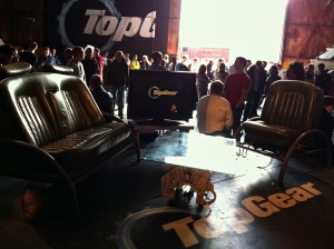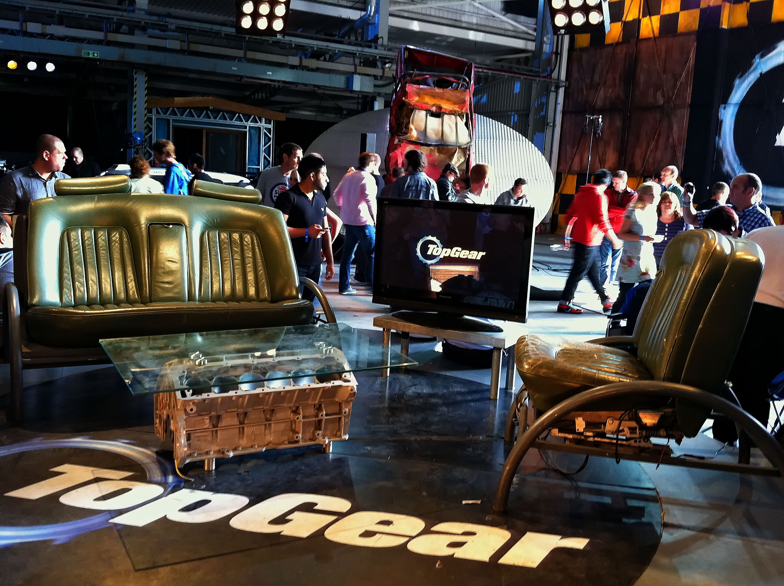 Another announcer with instructions appeared and helped to confirm our expectations. He geared us up with a blooper reel from the show, ending with Clarkson pointing to a young woman’s chest noting “If you ever come to England, all the birds here have got great tits…” That one I had seen on YouTube. He went on to explain how our role was important – to laugh at Jeremy’s jokes even if we needed to retake the scene several times. We practiced.