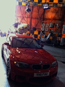 Pausing outside Top Gear Hangar, I looked over the gate and saw a corral of supercars between where we stood and the airfield / test track. I found myself standing right next to a very nice Ferrari and spied the new Aston Martin Virage in orange not too far away (which will be profiled by James the following week, to be followed by a good shaking out by the Stig on the test track). Further out were another Lambo, a Porsche and a car that looked like the double of the BMW 1 Series on the floor of the hangar – probably the one that the Jezza and the Stig had just tested around the track. Interestingly, there was an ambulance parked there that seemed to be a permanent part of the fleet.