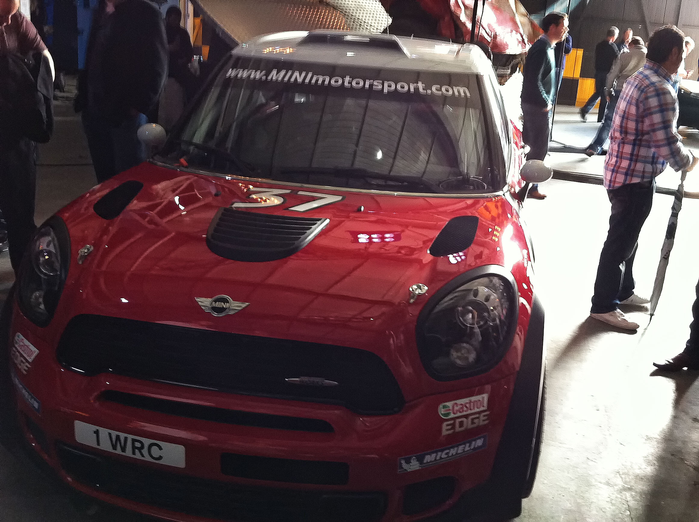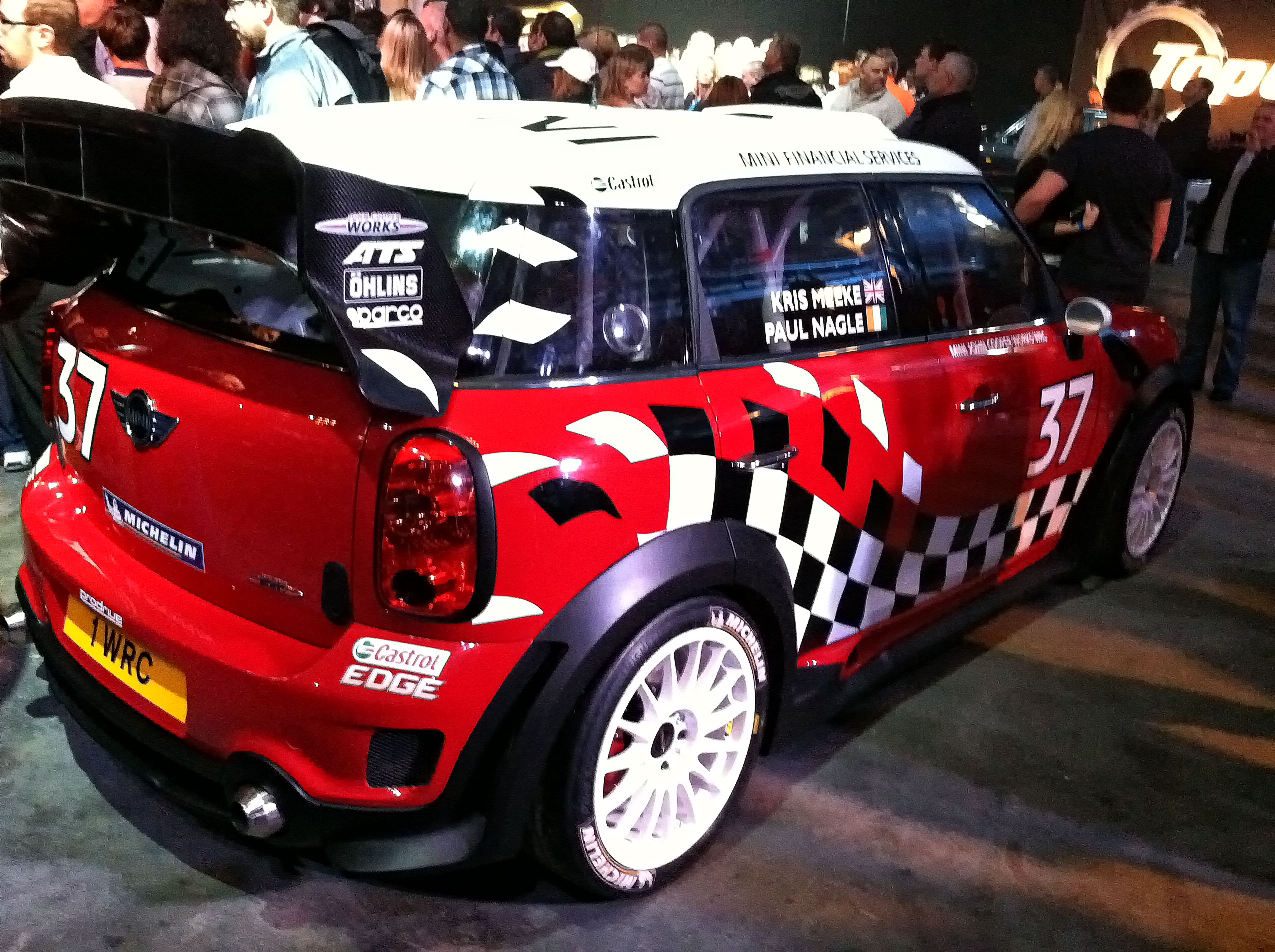 The space was huge – the producer said it could contain 1200 but the crowd was at a comfortable level. The oh, so familiar round stage was in the center and the early crowd swarmed it to get prime position for fame in the background. I was not up for that and hung out by the Toyota on the plinth near an ungodly beautiful Jaguar E Type convertible. I decided that if I would fight for a place on camera it would be near this most British car. In the studio was also a series of VWs, an orange BMW 1 series M car and the newly-famous MINI Countryman Rallye car. As loyal as I am to MINIs, this Jag was amazing and I wasn’t going to drift far from it.