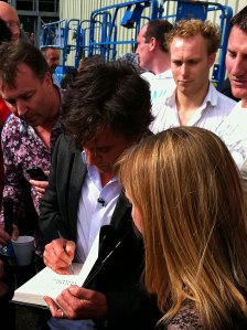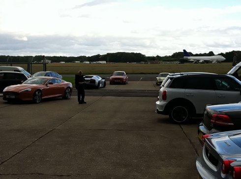 Endless fields and aged residences blurred by and soon we saw signs for Cranleigh and Dunsfold aerodrome, following Homer to our goal. A gatehouse was ahead with levered pole to control intruders but our papers were in order, the bar was raised and we entered after being given blue Top Gear wristbands (how long will I wear this I wonder? Certainly for my first couple days at work).