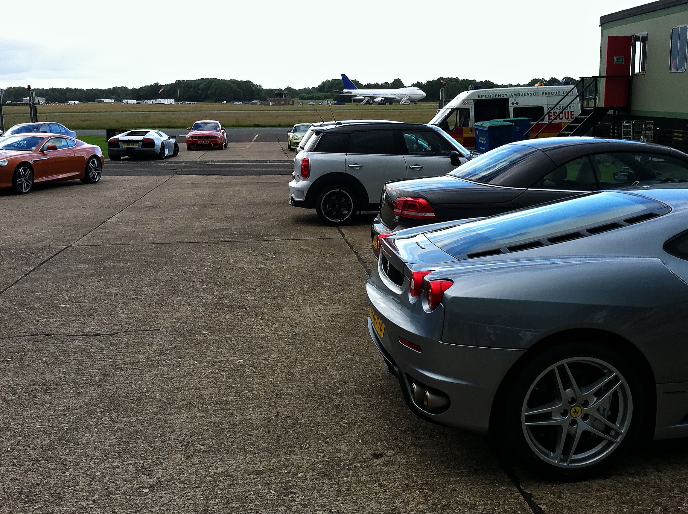 Ferrari at my feet, Porsche and ambulance straight back. Lambo, BMW and new Aston Martin Virage to the left
