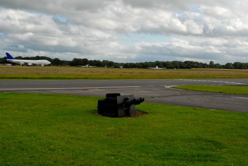 We wandered back towards the car park but were distracted by an access ramp that led to the airfield and noticed a few others from the audience already down there. We detoured to walk as far as we could to the airfield and came face to face with the final corner of the Top Gear test track – with Gambon corner to our left and the finish line to our right. I put aside the iPhone and grabbed my Nikon D200 from the boot and began taking serious pictures of the airfield and test track. The famous blue and white 747 was right in front of us and a number of retired British military aircraft were resting across the field.